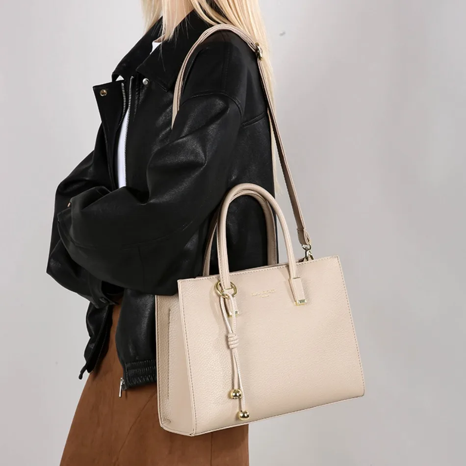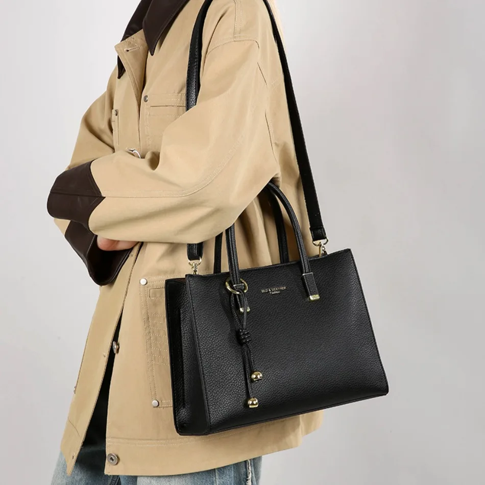 Elegant Everyday Design: Casual tote silhouette with decorative pendant
